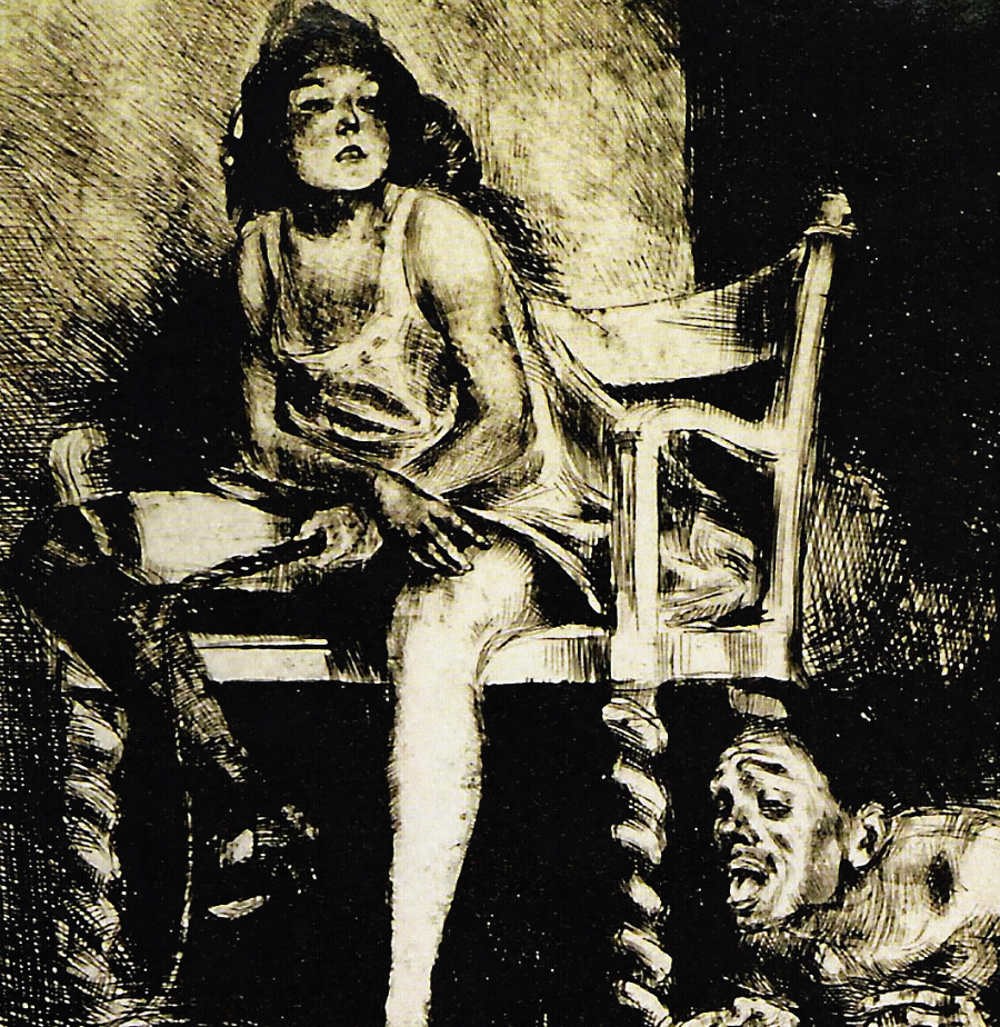 Nadruk na podstawie grafiki Brunona Schulza „Bestie” (z cyklu „Xięga bałwochwalcza”, ok. 1920-22 r.).
