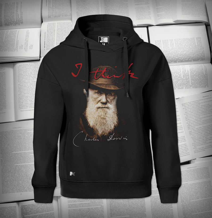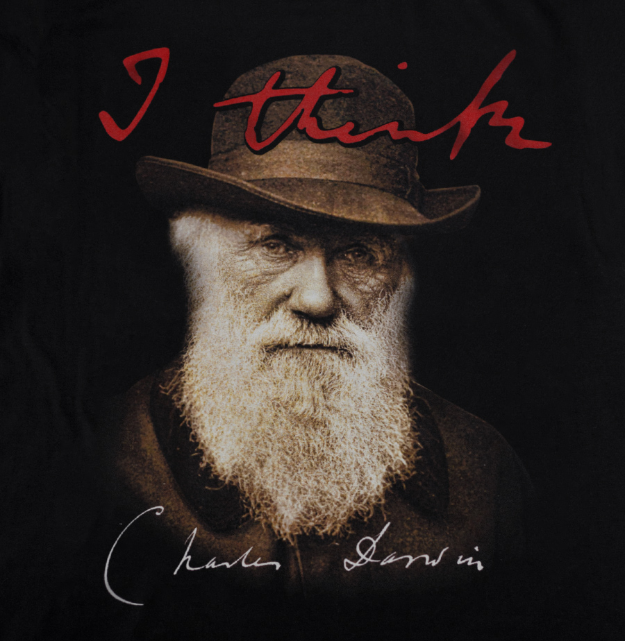 (słowa „I think” wykorzystane w grafice koszulki pochodzą z Darwinowskiego notatnika „B” z 1837 r. zatytułowanego „Transmutation of Species”, gdzie widnieją nad rysunkiem pierwszego drzewa ewolucyjnego, tzw. „Drzewa życia”)
