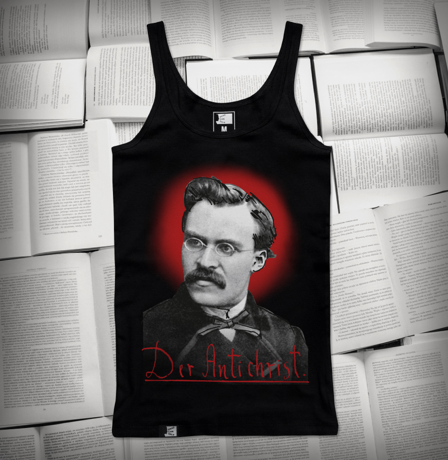 - napisał Friedrich Nietzsche w dziele „Der Antichrist. Fluch auf das Christentum” (Antychrzescijanin. Przekleństwo Chrzescijaństwa), które jest inspiracją tej koszulki.