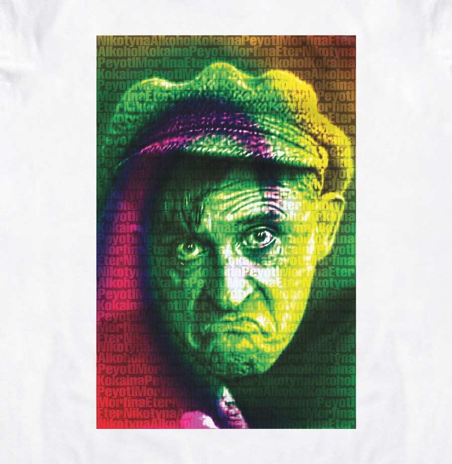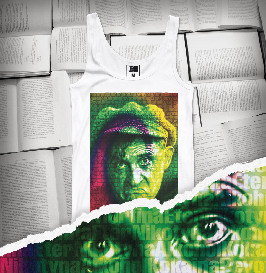 Grafika inspirowana jego „dziełkiem o narkotykach” z 1932 r. pt. „Nikotyna Alkohol Kokaina Peyotl Morfina Eter + Appendix” (wznawianym później pod krótszym tytułem „Narkotyki”).