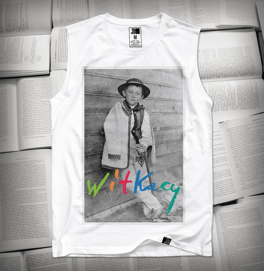 Tank-top męski w kolorze czarnym lub białym. Bawełna 100%, gramatura 155. Nadruk wykonany metodą druku bezpośredniego (DTG).