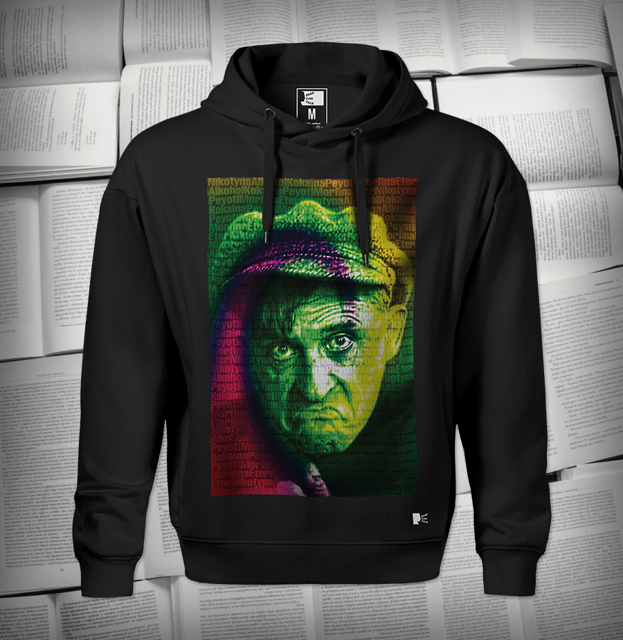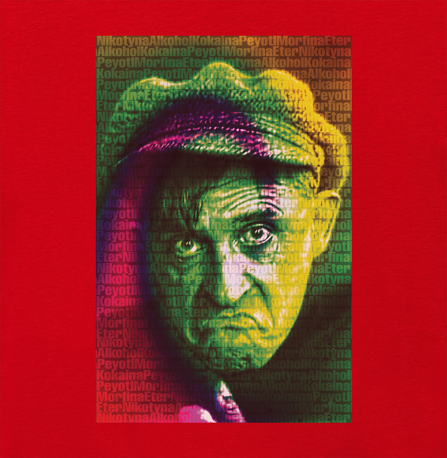 Wzór inspirowany jego „dziełkiem o narkotykach” z 1932 r. pt. „Nikotyna Alkohol Kokaina Peyotl Morfina Eter + Appendix”, wznawianym później pod krótszym tytułem „Narkotyki”.
