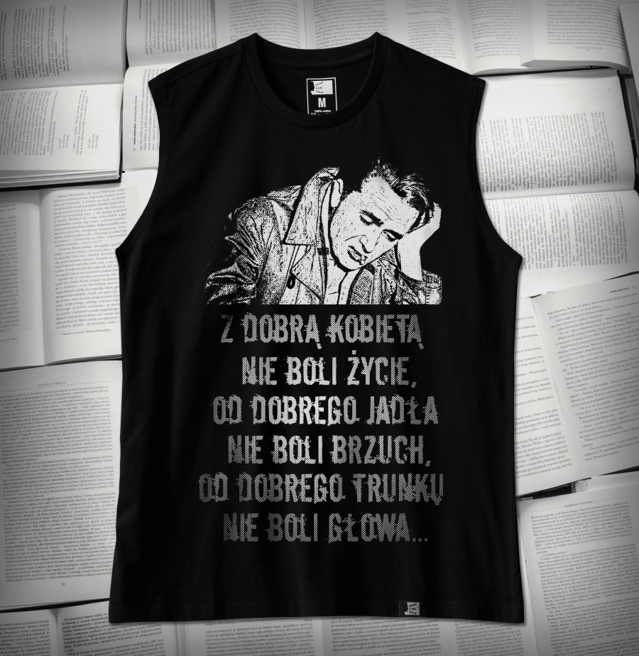 Tank-top męski w kolorze czarnym. Bawełna 100%, gramatura 155. Nadruk wykonany metodą druku bezpośredniego (DTG).